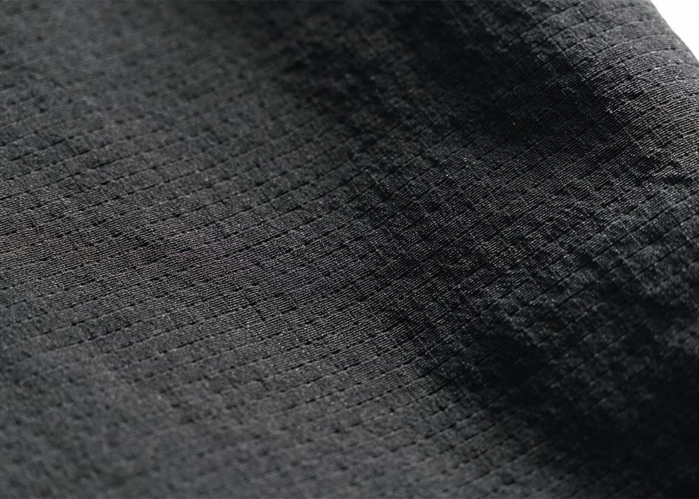 網戸のような規則正しい格子状の織り組織が、目に見えない空気の通り道を無数に形成しているのが最大の特徴です。