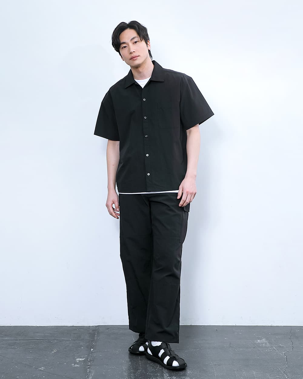 ブラックよりわずかにトーンを抑えた色味で、真夏でも重たくなりすぎず、コーディネートに馴染みやすいのが特徴です。