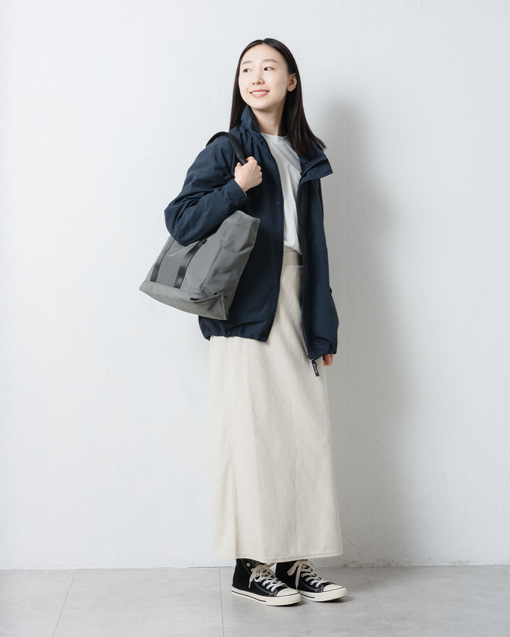 表地には、はっ水加工を施しているので、ちょっとした汚れや水滴程度ならはたいて落とすことができます。 多少の雨なら弾いてくれるので、突然の天候の変化にも安心です。
