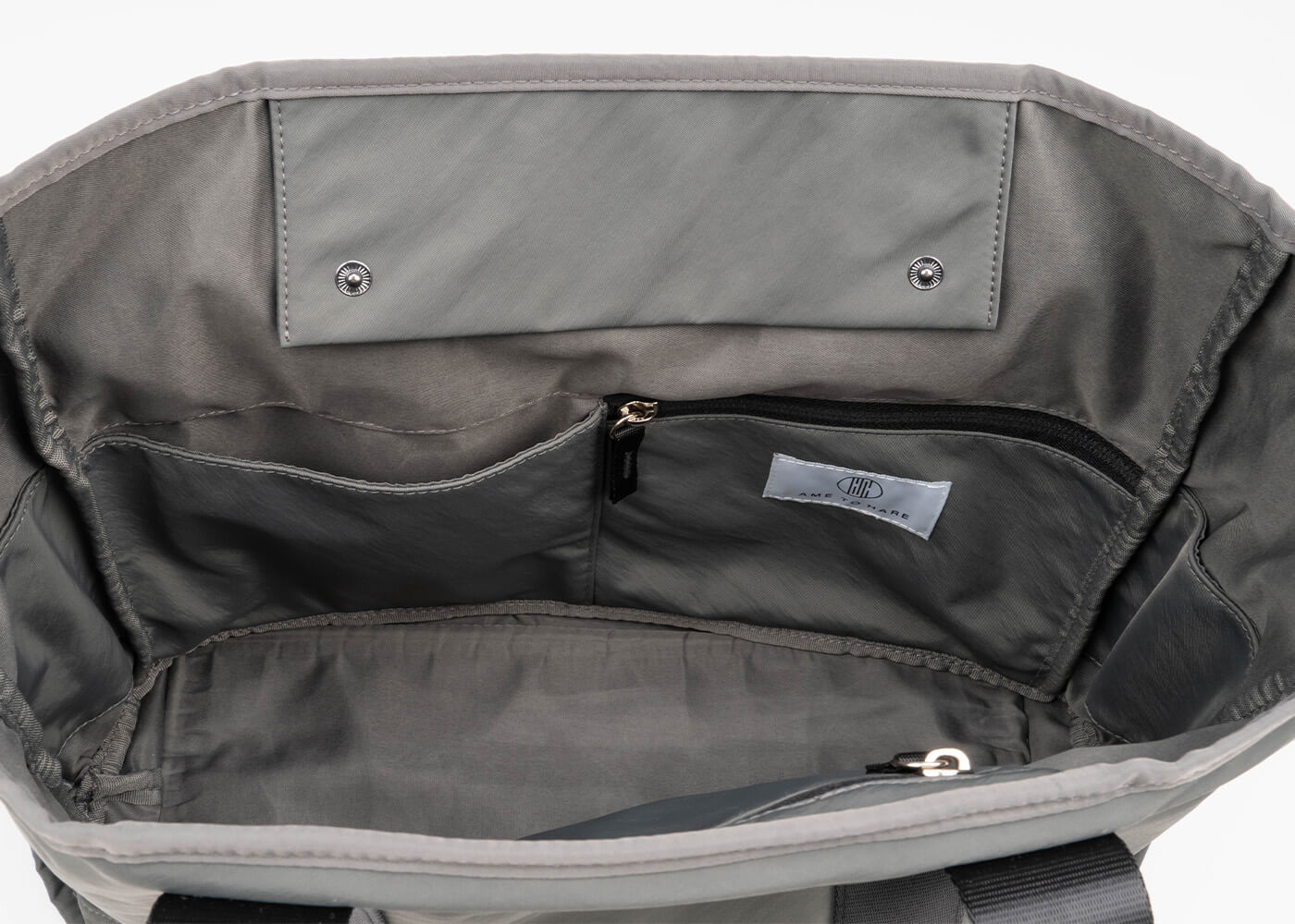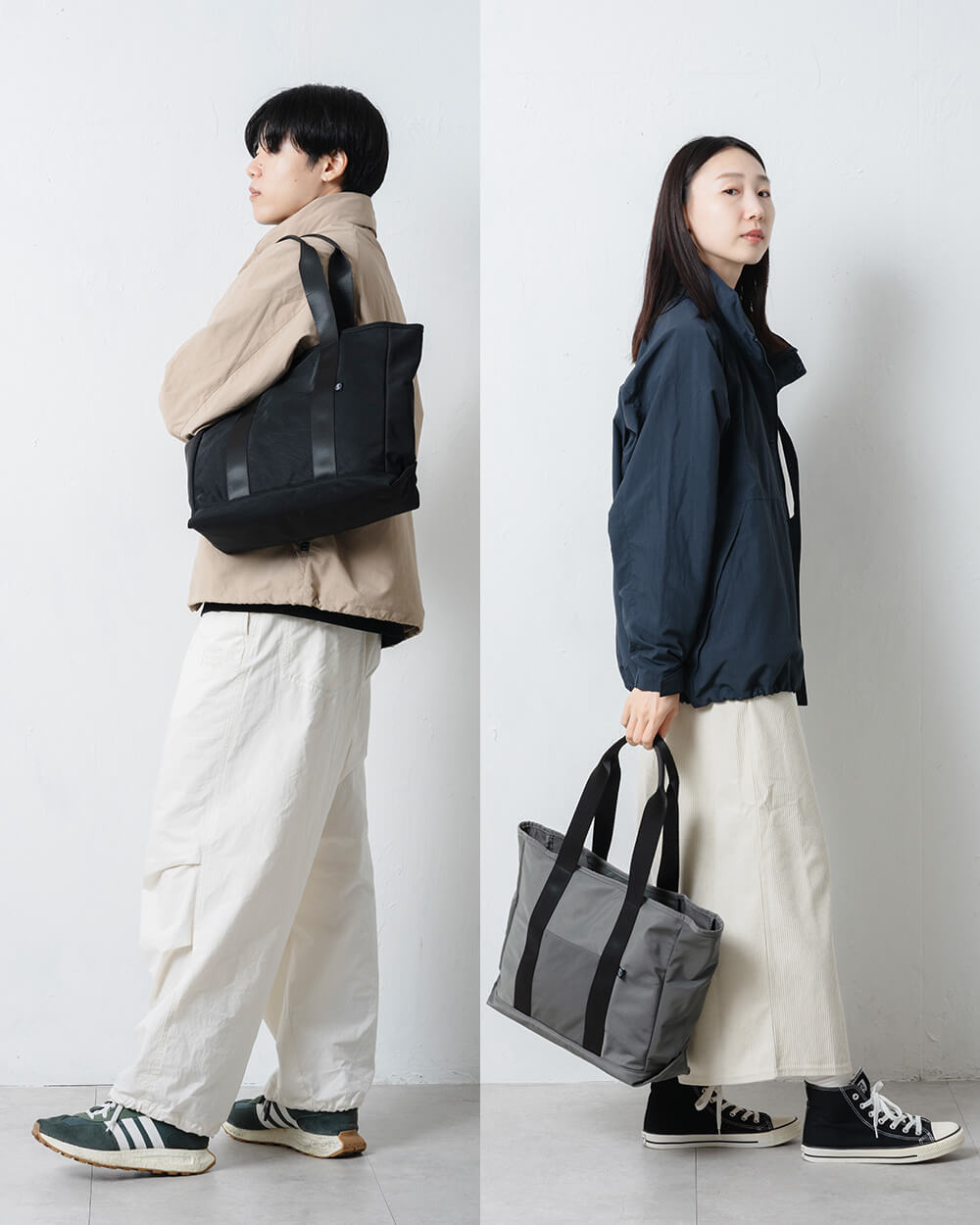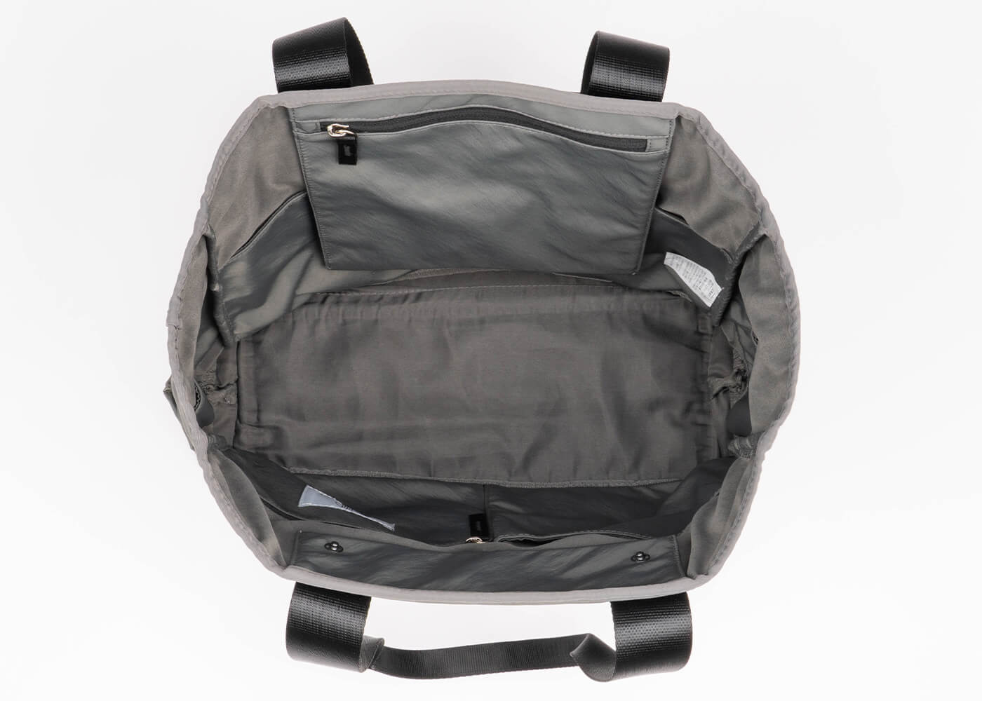 なめらかで心地よい肌触りのナイロン素材を使用したトートバッグ。