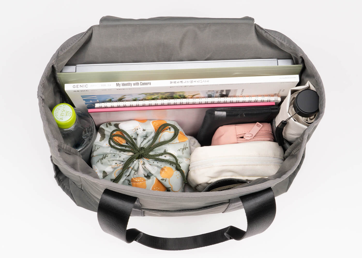 仕事に必要なA4書類はもちろん、お弁当や水筒、着替えなど、普段使いの荷物もしっかり入ります。