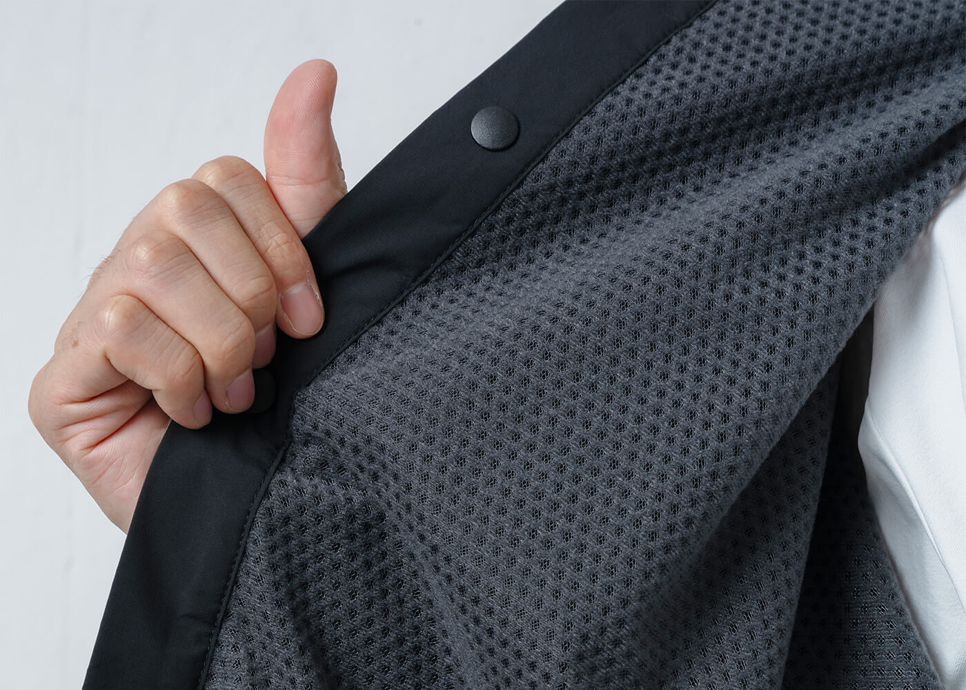 しっかりとしたハリのある表地と起毛メッシュの裏地の2層の壁が、暖かさをキープ。