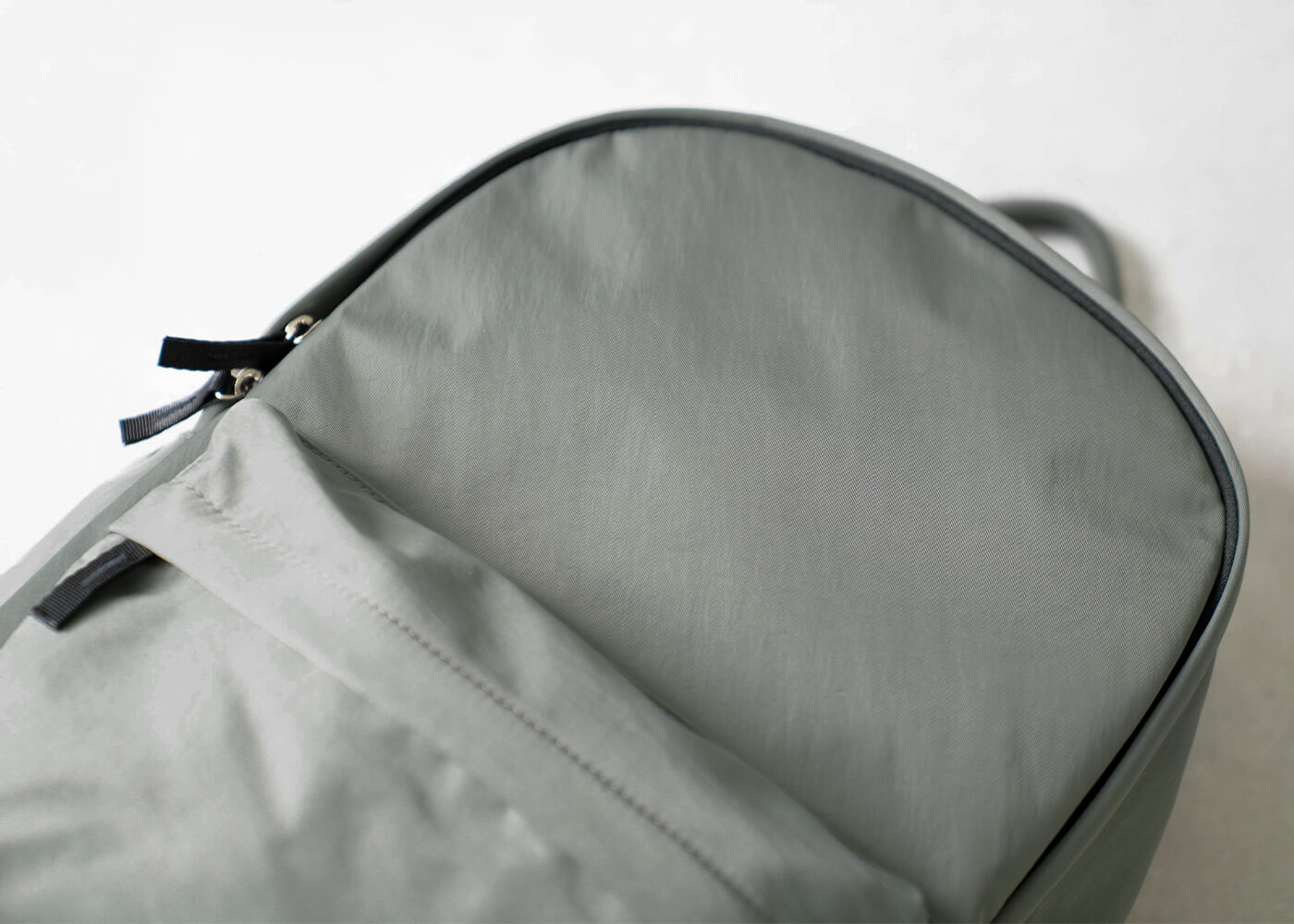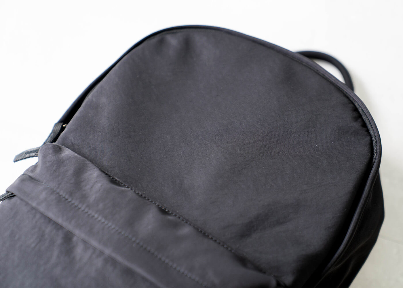 なめらかで心地よい肌触りのナイロン素材を使用したリュック。 つるりとした滑りの良い表面は摩擦が少ないため、デリケートな衣類の上に背負っても、衣類を傷つけにくい素材です。