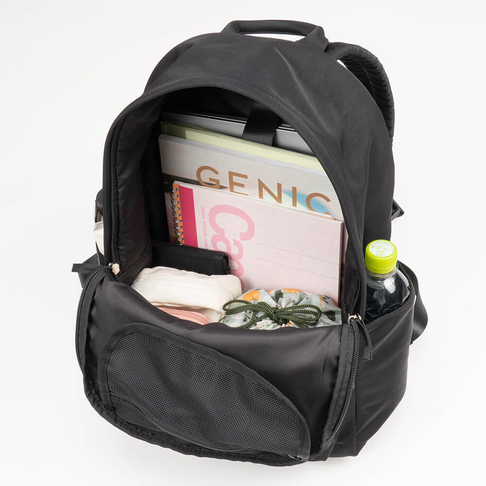 容量17Lで、仕事に必要なA4書類はもちろん、お弁当や水筒、着替えなど、普段使いの荷物もしっかり入ります。