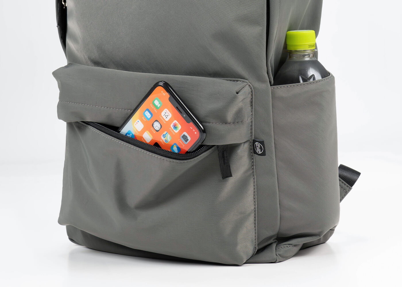 両側についたサイドポケットはペットボトルや折り畳み傘が収納可能。