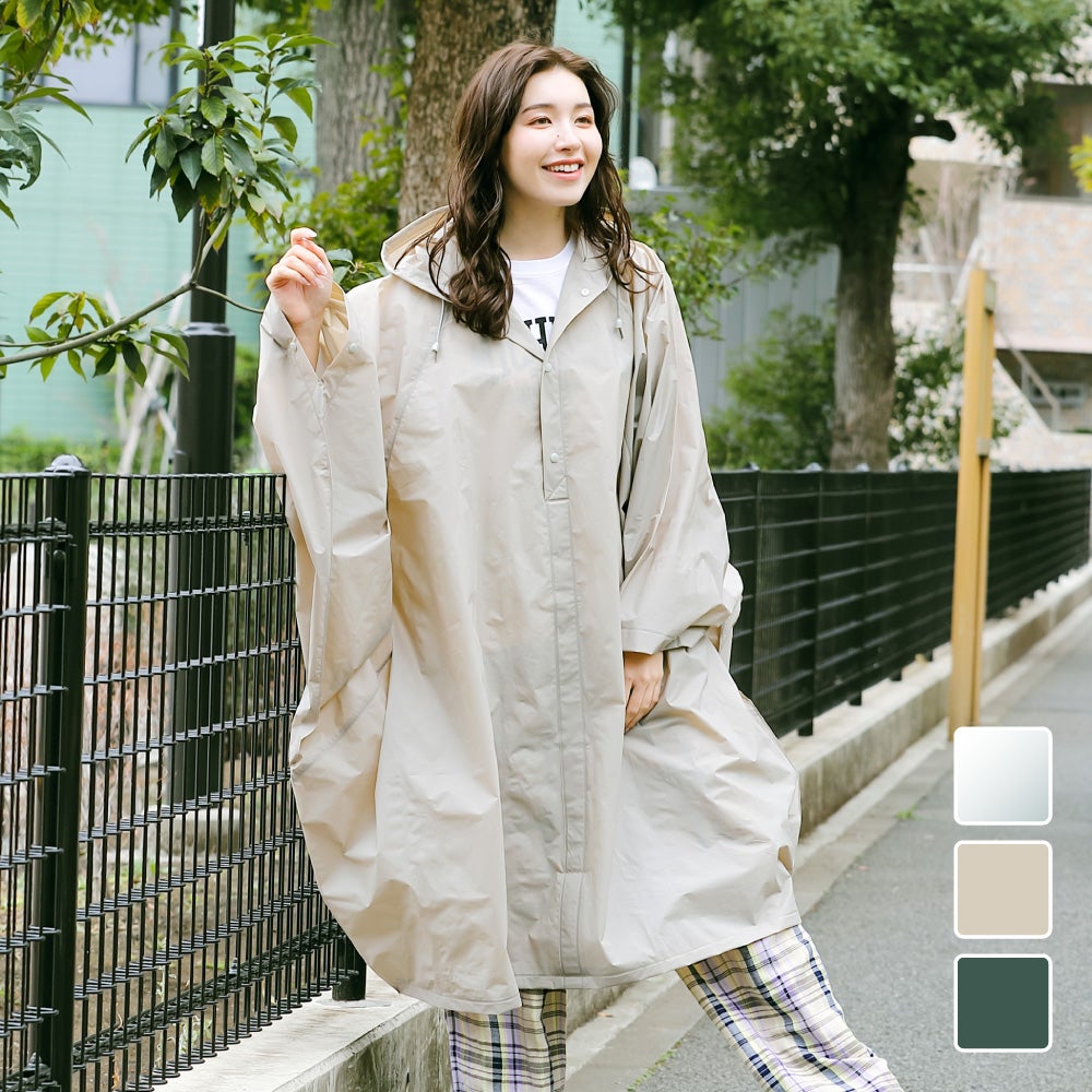 レディース用レインコートグッドデザイン賞2021受賞!雨の日の自転車や普段着に、スタイリッシュで快適に着こなせるレインコート。¥3,980(税込)◯