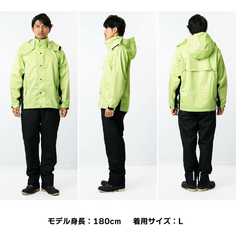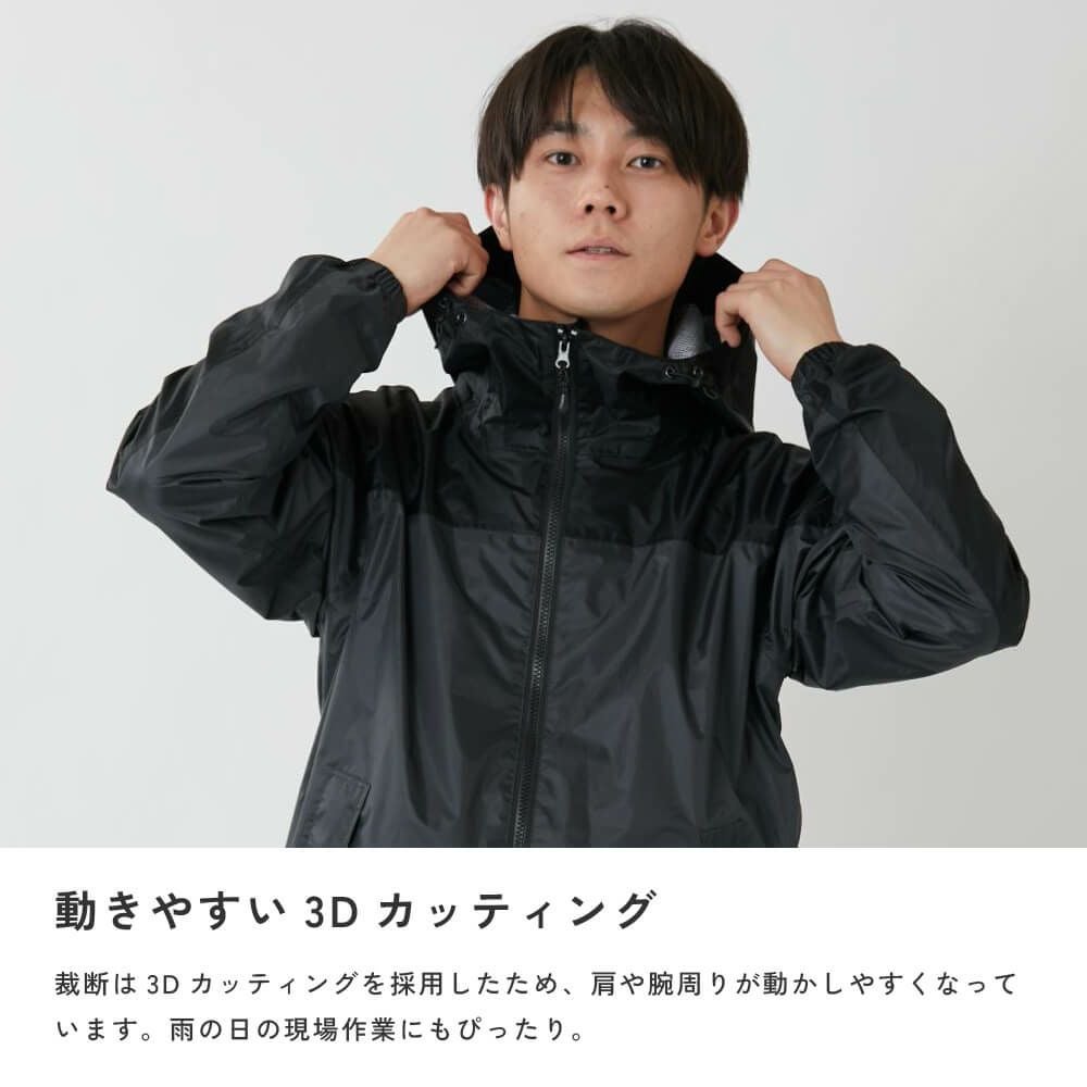 他の画像を見る MENS WOMEN 防水 頼れる防水力で雨も風も味方につけるフードタイプのレインスーツ 3294 ディフェンドレインフーディ 当店特別価格 ¥ 2,180 税込 耐水圧10,000mm。日常使いに便利な汎用性の高いレインスーツ お気に入りに追加