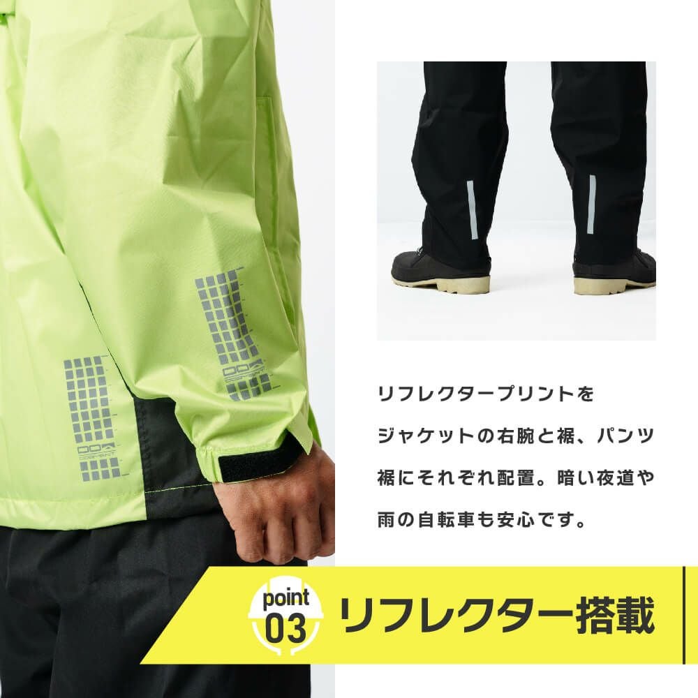 他の画像を見る MENS WOMEN 防水 各所にリフレクターを大胆に配置し、視認性を最大限に高めた安全性を実現 3810 視認性レインスーツ 当店特別価格 ¥ 8,780 税込 各所にリフレクターを大胆に配置し、視認性を最大限に高めた安全性を実現 お気に入りに追加