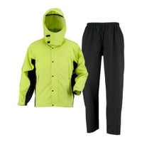 ボタンで取り外し可能なヘルメット対応フードを装備!防水性・透湿性を兼ね揃えたレインスーツ
