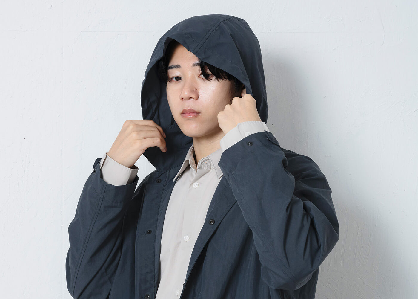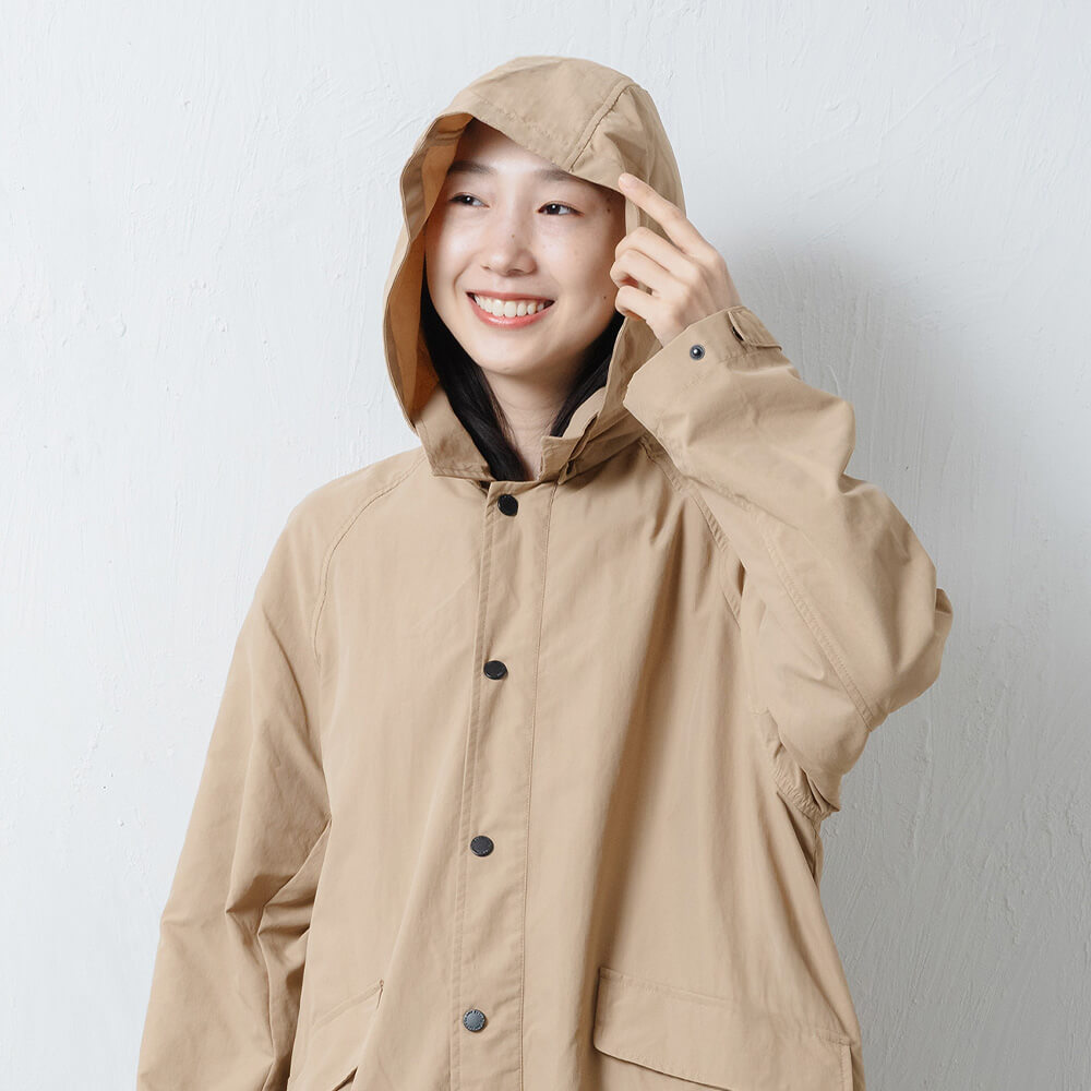 裏地のない一枚仕立てで軽く羽織ることができ、取り外し可能なフードで2WAYの着こなしが楽しめます。