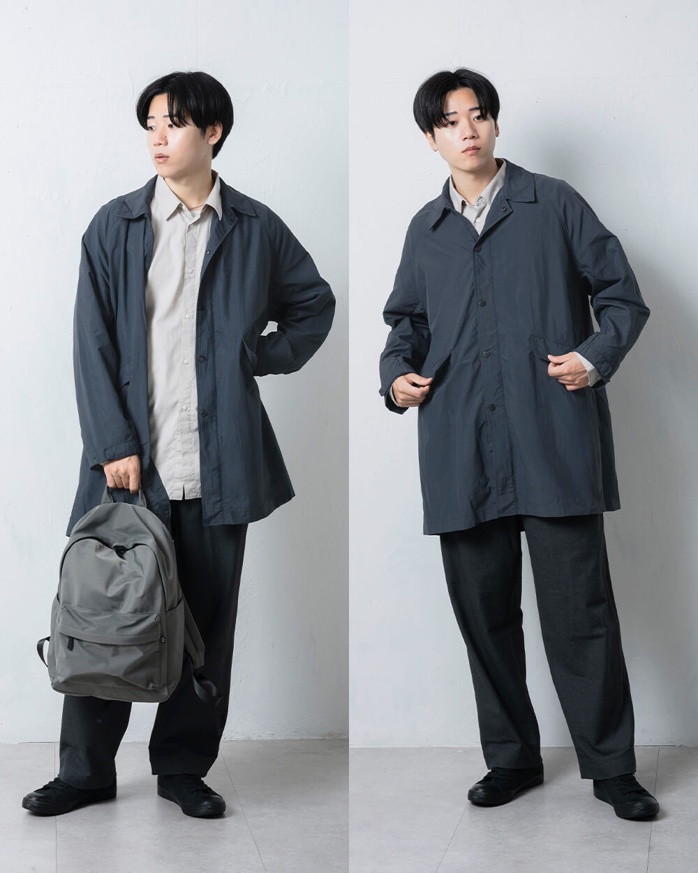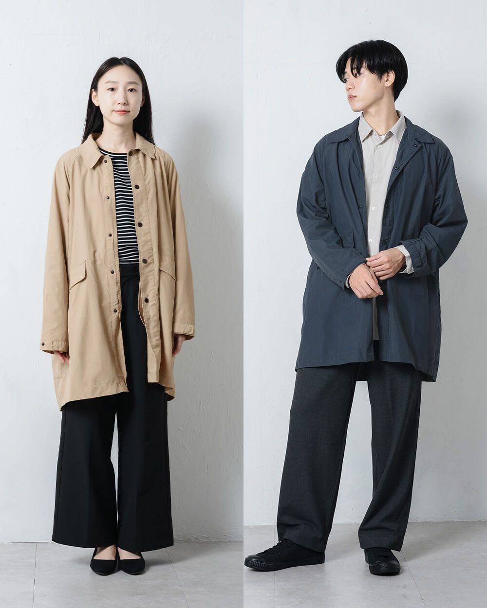 春先から秋口まで、季節の変わり目に活躍するユニセックスの撥水ハーフコートです。