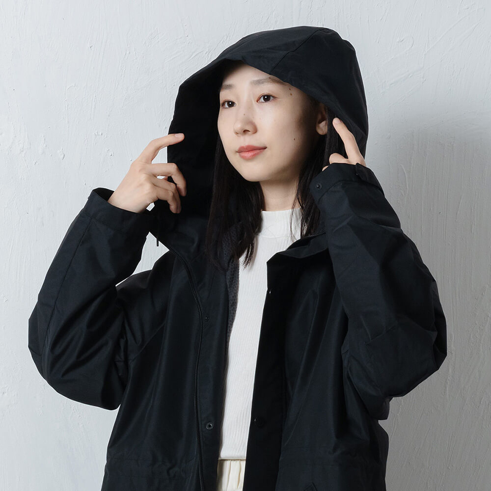 着ぶくれせずスッキリ暖かい、防水透湿素材を使用した高機能フーデットコート