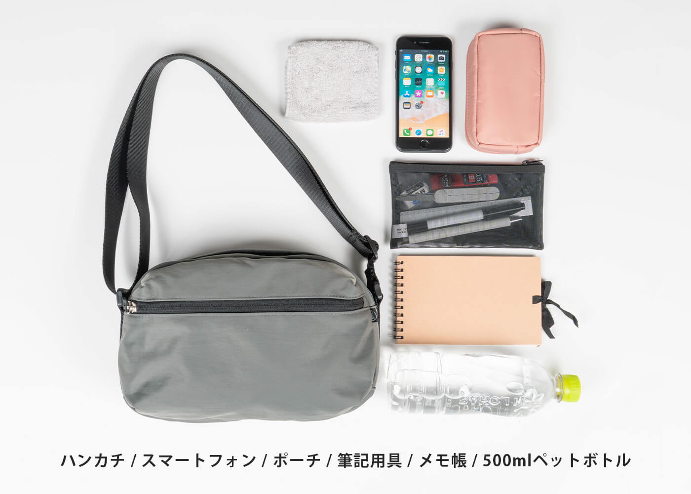 500mlボトルも入る、大人の機能性ミニショルダー。