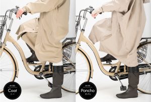 とはいえ、コート・ハイポンチョともに自転車を漕ぐ際はレインパンツを履かなければ完全に下半身の濡れを防ぐことはできません。雨が強い日に自転車に乗る予定の方や、雨を完全に防ぎたい方はレインパンツを併用することをおすすめします。