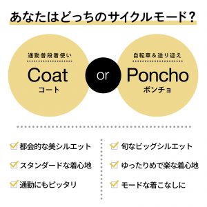 一方、日常のお出かけから自転車の送り迎え、旅行など、旬なビッグシルエットのゆとりのある着心地を楽しみたい方は、ハイポンチョがおすすめです。